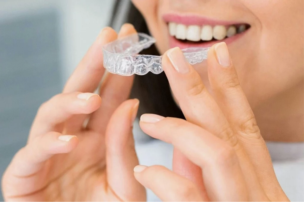 Bei der Behandlung mit transparenten Zahnschienen wird eine Serie individuell angefertigter, transparenter Schienen verwendet. Jede Schiene bewegt die Zähne Schritt für Schritt in die gewünschte Position.